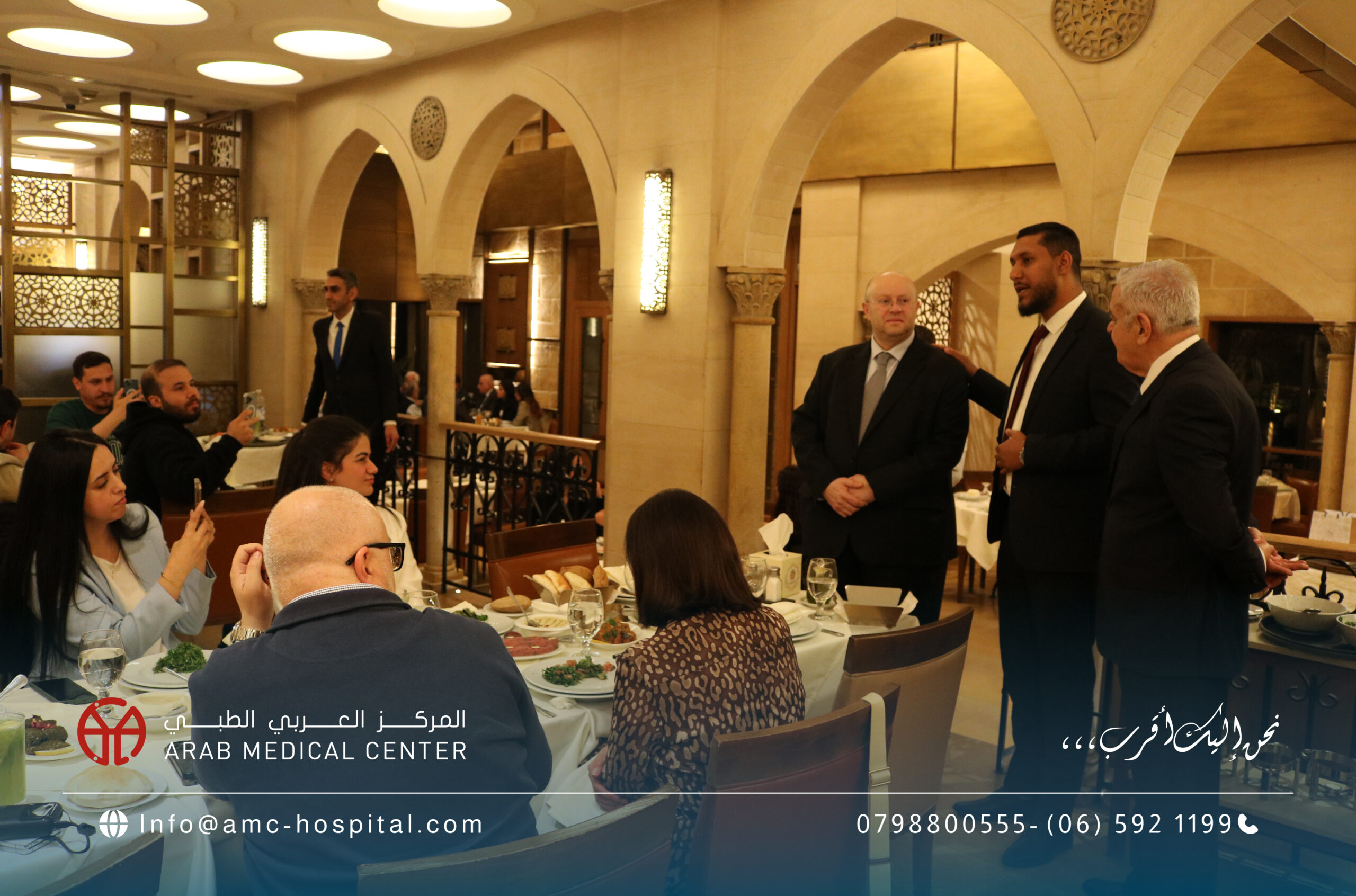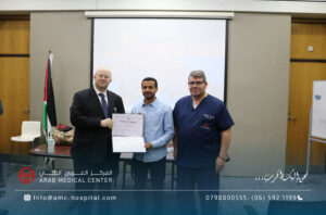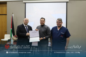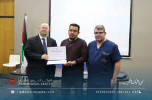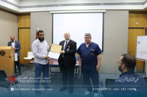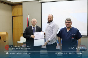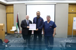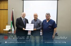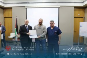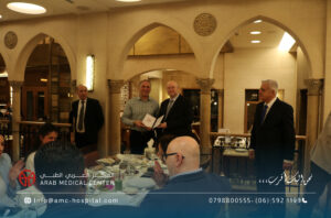 رعى الدكتور سعد سمارة / المدير العام الطبي للمركز العربي الطبي الحفل الختامي لورشة العمل الخاصة بتدريب الاطباء الاستشاريين من ليبيا في تخصصات جراحة الاوعية الدموية والامراض العصبية التداخلية، والتي جرت في المركز على مدار عشرة أيام بمشاركة كبار استشاريي هذه التخصصات على مستوى المنطقة العربية والشرق الاوسط وافريقيا، تضمنت محاضرات نظرية وتطبيقات عملية متنوعة على حالات مختارة لمختلف الدرجات في مجالات التخصص. وأكد الأطباء الليبيين المشاركين في هذه الورشة تقديرهم وإعتزازهم بما لمسوه من حفاوة الترحاب والضيافة وبشكل خاص لما حظوا به من إطلاع وتدريب من منابع المعرفة الطبية والعلوم الصحية والذي سيعزز مسيرتهم العلمية في تقديم الخدمات الطبية الأمثل لمرضاهم في ليبيا ويعزز التعاون بينهم وبين المركز العربي الطبي في تقديم أعلى درجات الرعاية والعناية الطبية التي يقدمها المركز العربي الطبي لكل مرضاه من شتى البلدان والدول بشعاره الشامل: “نحن إليك أقرب،،،” والذي يختصر المسافات والاوقات ليصل لكل المرضى سواء في الأردن أو ليبيا عن طريق المركز وسفراءه من الاطباء الاستشاريين الذين نهلوا العلم والمعرفة في مختلف أقسامه ووحداته المتميزة على الصعيد الدولي.